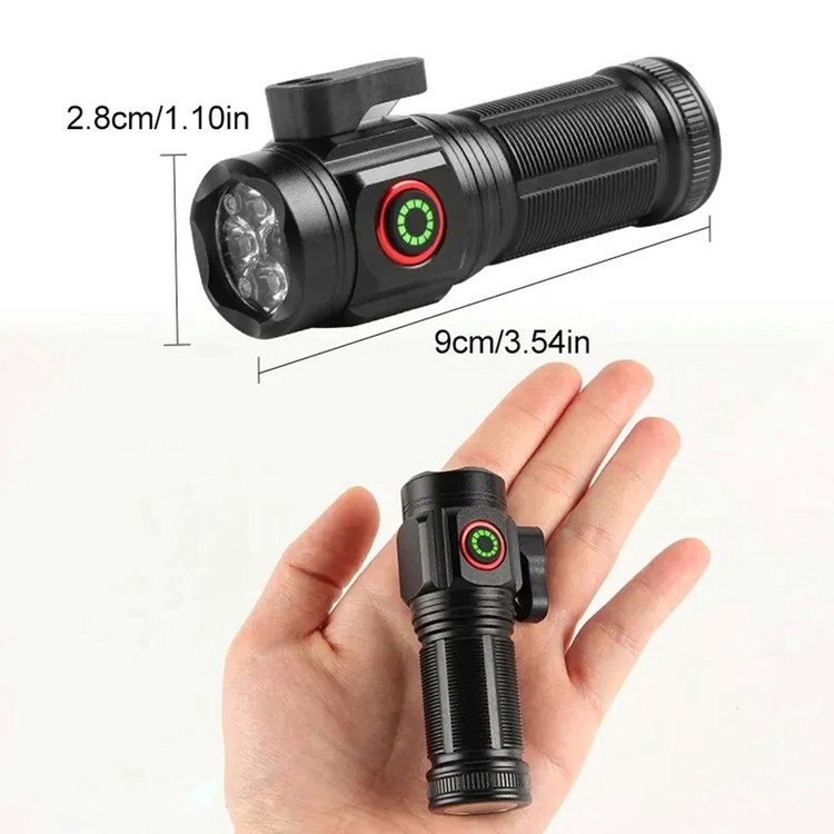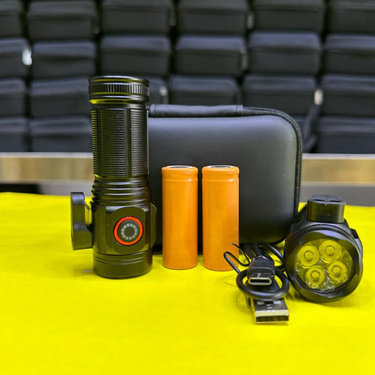 چراغ قوه جیبی مدلW5183 چهار لامپ با خروجی دو عدد باتری لیتیومی 1200میلی امپر کابل شارژ تایپ سی کاتر کناری و اهنربا جعبه برزنتی زیپ دار محک برد نوری تا 80 متر نگهداری شارژ باهرباتری 40دقیقه در حالت پرنور جمعا با دو باتری 1:30 در حالت پر نور دارای 5 حالت نوری ضد اب باران
