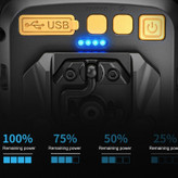 این چراغ پروژکتور از باتریهای قابل شارژ لیتیومی 18650 بهره میبرد که امکان شارژ از طریق پورت USB-C را فراهم میکند. با ابعاد 4x10x11 سانتیمتر و وزن 370 گرم (با باتری)، این چراغ به راحتی قابل حمل و استفاده در محیطهای مختلف است. بدنه این چراغ از پلاستیک فشرده مقاوم ساخته شده که در برابر ضربه و آب مقاومت خوبی دارد. این چراغ میتواند به عنوان پاوربانک برای شارژ دستگاههای الکترونیکی مانند گوشیهای همراه مورد استفاده قرار گیرد. دارای پایه نگهدارنده با قابلیت چرخش 180 درجه و مگنت آهنربایی برای اتصال به سطوح فلزی است که امکان نصب آسان در مکانهای مختلف را فراهم میکند. شدت نور این چراغ 1000 لومن است که نوردهی قوی و موثری را در محیطهای کمنور و تاریک فراهم میکند. دارای نشانگر میزان شارژ باتری که کمک میکند تا از میزان باقیمانده شارژ مطلع شوید.