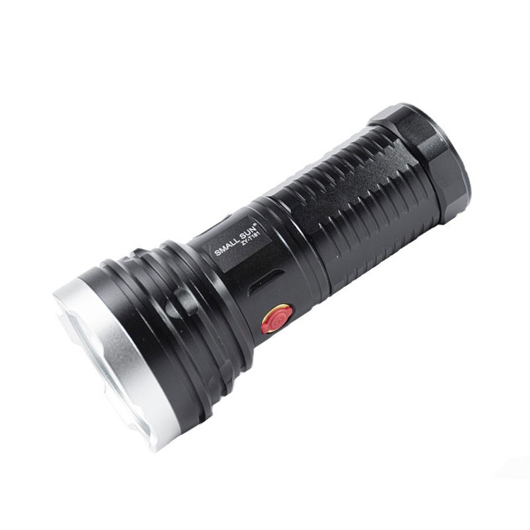 چراغ قوه پلیسی ضد آب اسمال سان مدل ZY-T181 ازکمپانی اسمال سان یکی از کمپانی های خلاق و نوآور در ساخت چراغ قوه های قدرتمند است. چراغ قوه smallsun ZY-T181 یک محصول بسیار جذاب می باشد و جزء پرنور ترین چراغ قوه های اسمال سان با برد نور نزدیک به 800 متر می باشد. این چراغ قوه دارای قابلیت تنظیم کانون یا زوم نمی باشد و فاصله نزدیک و دور را به خوبی روشن نماید. چراغ قوه پلیسی small sun ZY-T181 دارای یک عدد ال ای دی پر قدرت می باشد که برد نور آن نسبت به چراغ قوه های دیگر بسیار عالی می باشد. این چراغ قوه خوش ساخت فقط با رنگ مشکی طراحی و تولید شده است. چراغ قوه دستی اسمال سان مدل ZY-T181 دارای طراحی زیبا و منحصر به فردی می باشد این چراغ قوه از آلیاژ آلومینیوم طراحی شده و در برابر آب باران و رطوبت مقاوم است. بدنه این چراغ قوه بسیار محکم است و در برابر ضربه مقاوم است. کیف چراغ قوه اسمال سان T181 دارای 4 عدد باتری 18650 اسمال سان با ظرفیت 2400 میلی آمپر، شارژر، بند نگدارنده، پیچ یدکی، شستی خاموش روشن یدک، واشر و دستگیره میباشد که در صورت لزوم میتوان با پیچ موجود در بسته بندی بر روی بدنه چراغ قوه نصب کرد. چراغ قوه پلیسی ZY-T181 دارای 4 عدد باتری شارژی لیتیوم یون اسمال سان با ظرفیت 2400 میلی آمپر می باشد به این نکته توجه داشته باشید که این باتری ها اورجینال می باشند و ظرفیت نوشته شده بر روی آن بر خلاف دیگر باتری های موجود در بازار واقعی می باشد. با توجه به قدرت روشنایی بالایی که این چراغ قوه دارد در حالت پر نور حداکثر 1 ساعت روشن می ماند ، در حالت نور متوسط 3 ساعت و در حالت نور کم نزدیک به 5 ساعت می توانید از آن استفاده کنید. این چراغ قوه دارای 3 حالت نورپردازی کم نور، پرنور و چشمک زن می باشد.