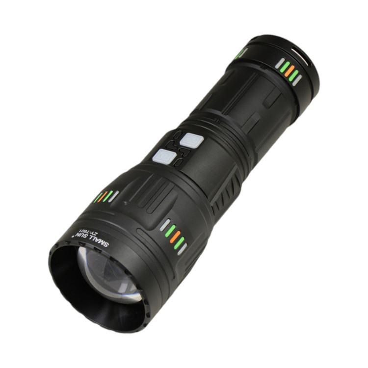اول از همه از جنس فوق العاده محصول شروع میکنیم.جنس بدنه چراغ قوه Small Sun مدل T601 لیاژ الومینیوم است.این جنس به چراغ قوه استحکام بالایی میدهد به گونه ای که در صورت وارد شدن ضربه به محصول (در صورتی که محصول از ارتفاع به زمین بیفتد یا تحت فشار قرار گیرد) کوچک ترین اسیبی به ان از لحاظ ظاهری و عملکردی وارد نمی شود. در ساخت تک لامپ چراغ قوه از سری جدید لامپ های مدل ال ای دی (SFT40 LED) استفاده شده است که چهار حالت نوردهی بسیار کاربردی را در اختیار همه قرار میدهد.حالت های نوردهی لامپ به صورت حالت نوردهی کم نور، متوسط، پرنور و چشمک زن میباشد که در حالت نور زیاد چراغ قوه به مدت 5 ساعت میتواند به طور مداوم نور تولید کند و در حالت نور کم تقریبا 8 ساعت شارژ نگه دارد.حالت چشمک زن این محصول نیز مانند سایر چراغ قوه های دیگر برای حالت های اضطراری و درخواست کمک مورد استفاده قرار میگیرد. همان طور که همه ما میدانیم قدرت روشنایی و برد نور یک چراغ قوه از مهم ترین ایتم هایی است که در هنگام خرید به ان توجه زیادی میشود.برد نور این چراغ قوه 1000 متر بوده و قدرت روشنایی ان 5000 لومن است که این اعداد نشان دهنده ی قدرت فوق العاده لامپ دستگاه و خود دستگاه است.از ویژگی های دیگر این محصول میتوان به ضداب بودن ان اشاره کرد.چراغ قوه اسمال سان کاملا ضد اب طراحی شده است تا افراد بتوانند در هر شرایط اب و هوایی چه برفی چه بارانی از ان استفاده کنند. چراغ قوه دارای 4 عدد باتری شارژی 2400 میلی امپری از برند اسمال سان است.از ویژگی های یک چراغ قوه باتری خور تعویض باتری های ان پس از گذشتن سیکل حیات باتری و از کار افتادن ان است که این محصول چنین قابلیتی دارد. پس، پس از از کار افتادن این باتری ها استفاده گننده میتواند با تعویض باتری مثل روز اول از چراغ قوه استفاده کند. شرکت اسمال سان به بسته بندی محصولاتش نیز اهمیت ویژه داده است به گونه ای که همان طور که در تصاویر محصول مشاهده می کنید چراغ قوه Small Sun T601 دارای یک جعبه بسیار شیک و مجلسی با اقلامی از جمله بند نگه دارنده،4 عدد باتری با ظرفیت 2400 میلی امپر،ادابتور مخصوص شارژ باتری های چراغ قوه و کیف مخصوص چراغ قوه است.