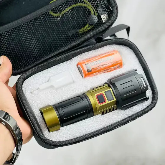 بدنه این چراغ قوه از آلیاژ آلومینیوم مقاوم ساخته شده است تا در برابر ضربه، خراش و شرایط سخت محیطی دوام بیاورد، در حالی که وزن سبک و طراحی ارگونومیک آن، حمل و استفاده طولانیمدت را آسان میکند. با سه حالت نوردهی (نور قوی برای حداکثر دید، نور ملایم برای صرفهجویی در باتری و حالت چشمکزن برای مواقع اضطراری)، شما برای هر سناریویی آماده خواهید بود.