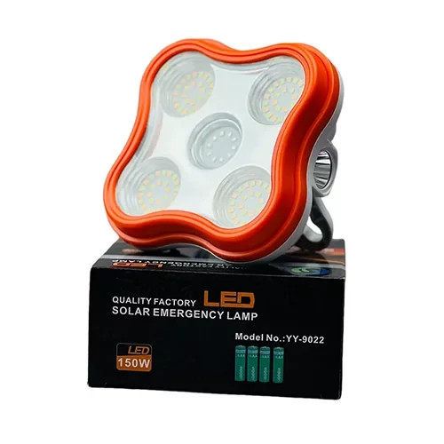 چراغ شارژی 150 واتی مدل YY-9022 در واقع یک نوع چادر است و استفاده آن نسبت به چراغ قوه بسیار راحتر است زیرا به دلیل داشتن حلقه و مگنت می توان براحتی داخل چادر یا روی شاخه درخت نصب کنید و طوری طراحی شدن که هیچ آسیبی به چادر وارد نمیکند و کاملاً استادارد می باشد. چراغ شارژی مدل YY-9022 دارای 4 عدد باتری لیتیومی با سایز 18650 می باشد که جدا ازین در پشت چراغ نیز یک صفحه سولار طراحی شده که تا حدودی می توان چراغ را شارژ نمود، همچنین می توان چراغ شارژی را با کابل تایپ سی نیز شارژ نمود.